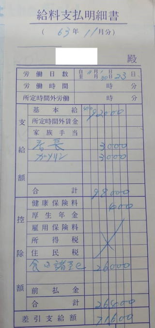 私が弟子入りした時のお給料(左)です