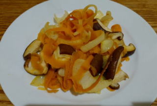 人参と椎茸 玉ねぎの炒め物と納豆です